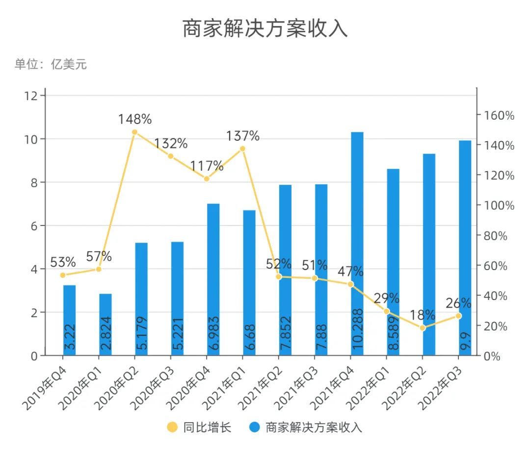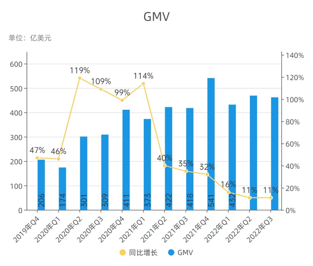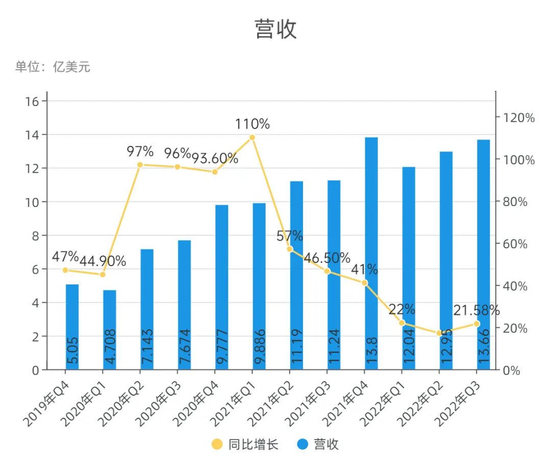 但Shopify的“回血”似乎比想象中来得快。其今年三季度财报即显示出复苏迹象:在美元持续走强的情况下,Shopify的总收入同比仍增长21.58%,达到13.66亿美元;GMV462亿美元,同比增长11%(或按固定汇率计算增长15%),高于美国零售业整体增长率。此外,Shopify预计,今年第四季度GMV的增长将继续跑赢美国零售市场。