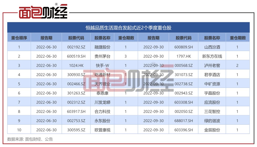 分析发现,恒越品质生活混合发起式的前十大重仓股换仓较为频繁。2022年三季度末,首次进入该基金前十大重仓股的股票有9只,2022年二季度末同样存在这种情况。根据股票买卖金额推算,2022年上半年该基金的股票换手率超过1400%。
