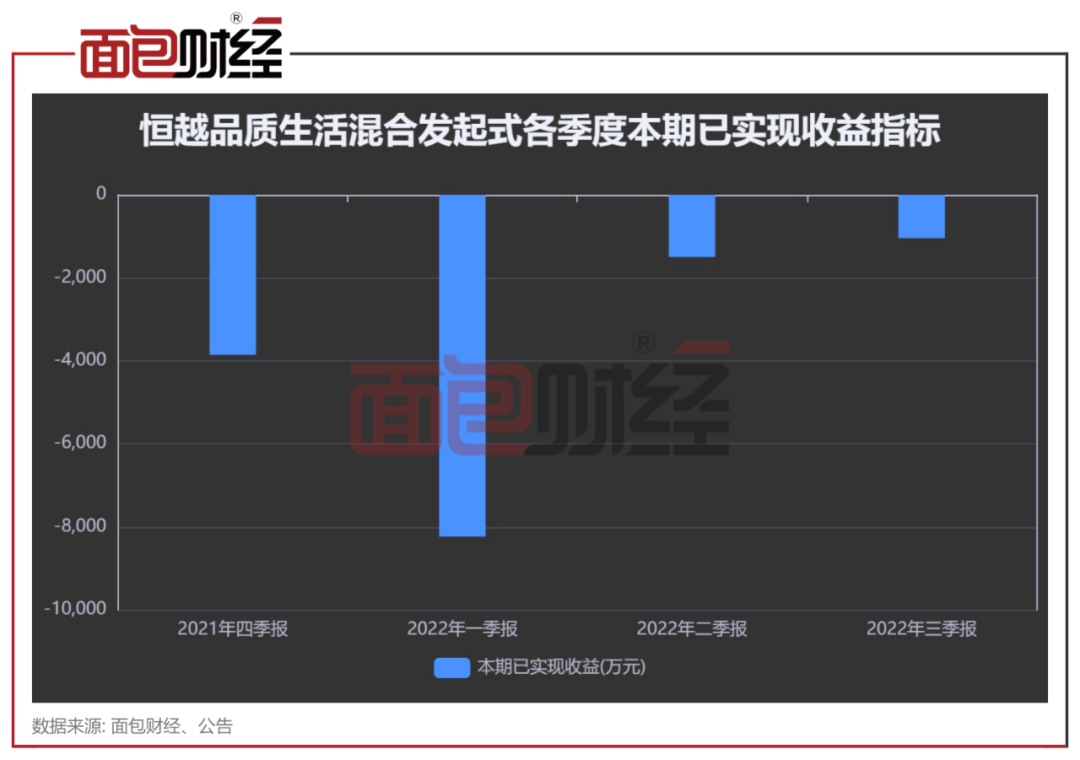季报数据显示,恒越品质生活混合发起式成立以来“本期已实现收益”金额持续出现负值,其中2022年一季度最高达到-8234万元。