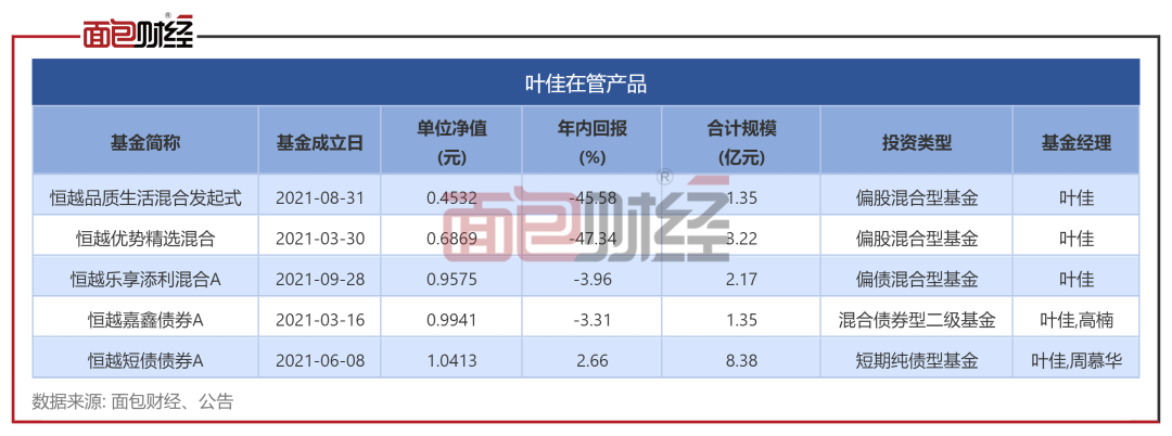 分析发现,基金经理叶佳在管的偏股型基金整体表现较差,年内回报率均低于-45%,产品单位净值均跌至0.7元以下,在同类基金中排名垫底。