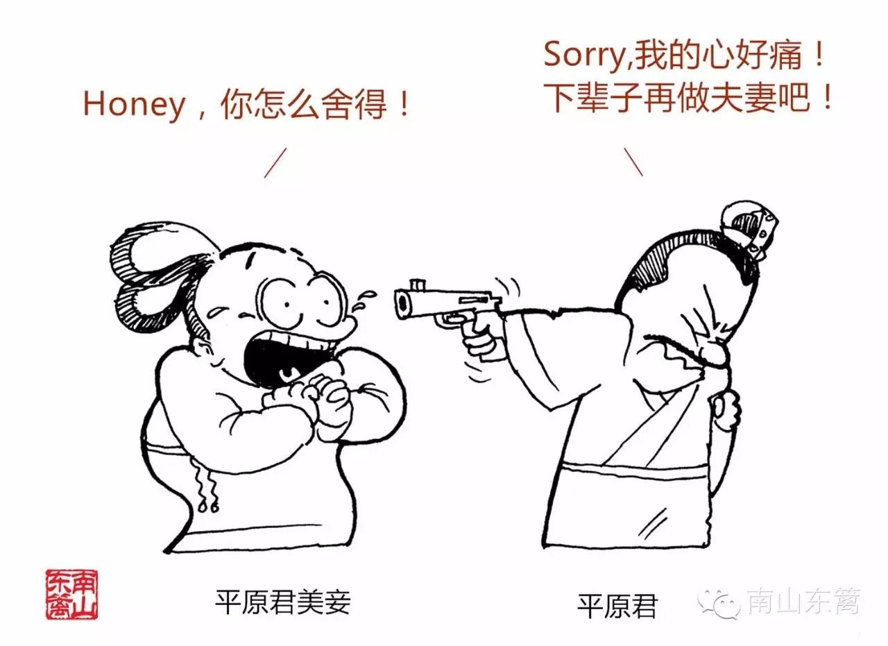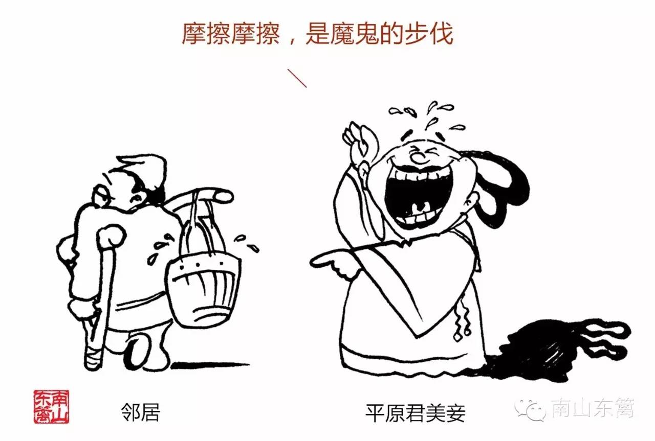 平原君家有位美人,在楼上看见对面邻居一个跛脚汉子在打水,不禁大笑。