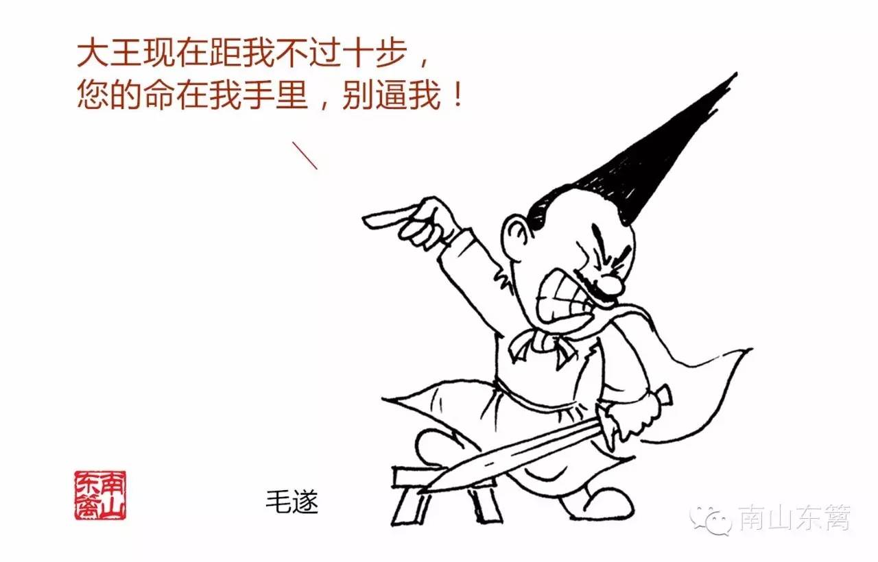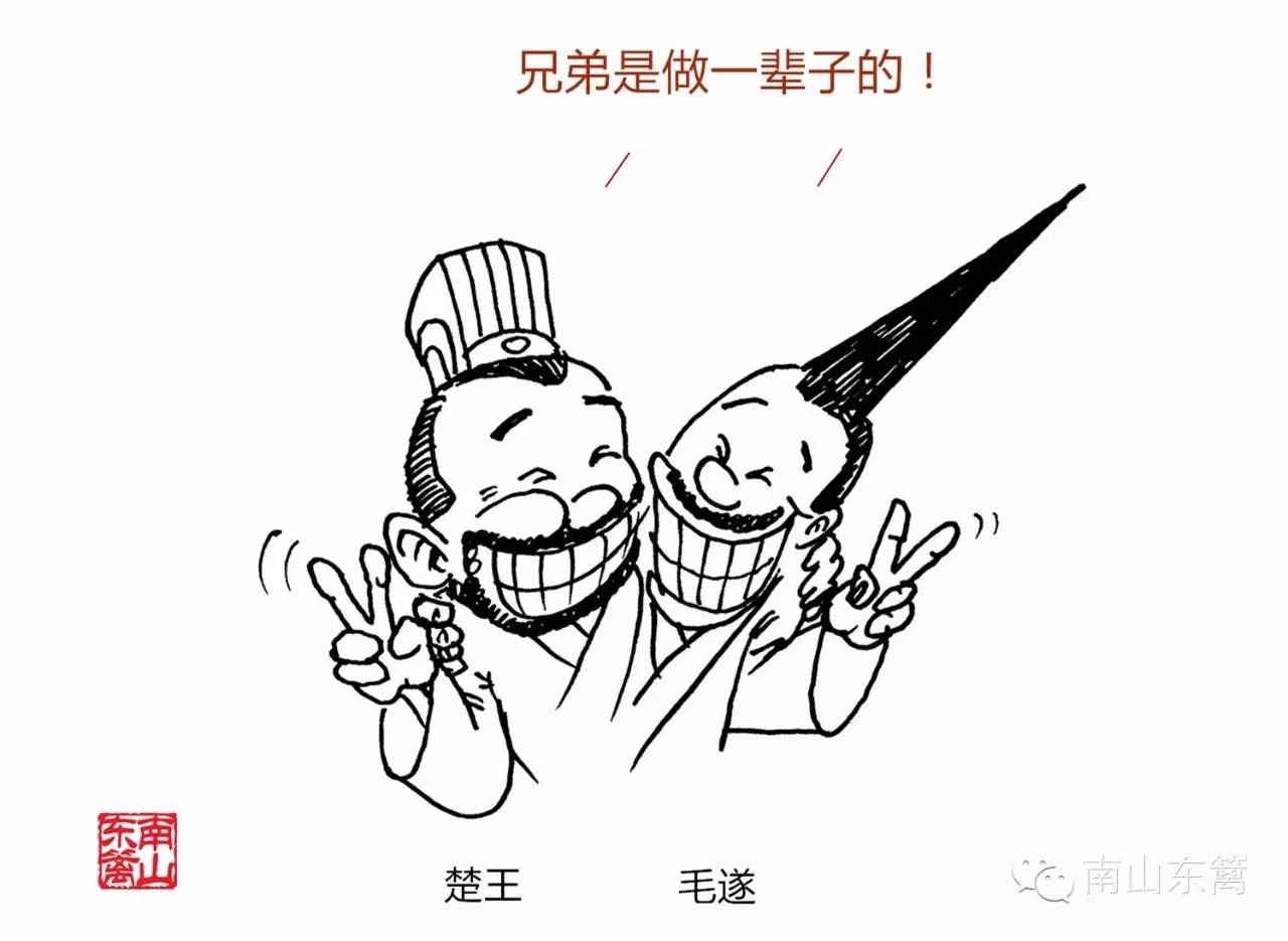 平原君带二十个能人到了楚国,跟楚王从早上谈到中午还没个结果。毛遂按剑踏进会议室。