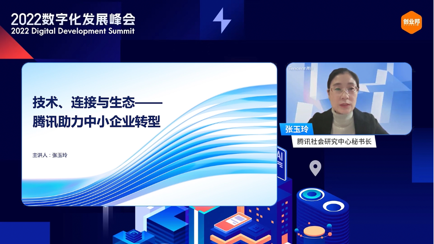 在《技术、连接与生态——腾讯助力中小企业转型》的主题演讲中,腾讯社会研究中心秘书长张玉玲表示,中小企业数字化面临的挑战,主要在于缺少资金、技术和人才支持,以及数字化转型不平衡不充分等问题。根据中小企业数字化转型报告分析,2021年79%的中小企业还属于数字化转型的初步探索阶段,12%到了应用践行阶段,只有9%进入到了深度运营运用阶段。
