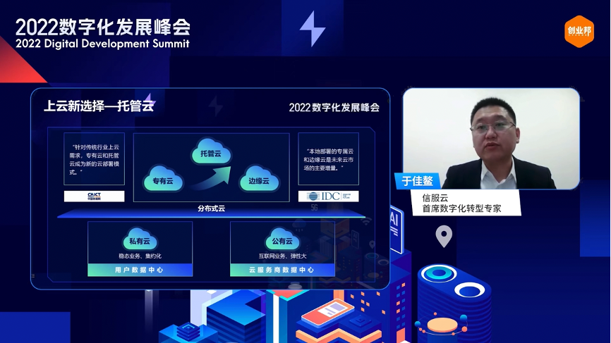 信服云首席数字化转型专家于佳鳌发表了《信服云托管云为企业构建无须取舍的数字化底座》的主题演讲,剖析了企业在数字化转型过程中面临的“上云难、用云难、数据可控难”等问题,分享了信服云托管云帮助企业破解数字化转型难题的实践经验。
