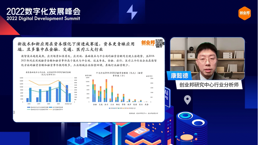 在开幕致辞中,创业邦副总裁赵镜波表示,企业在推进数字化转型时往往阻力重重,比如缺乏引领数字化构建的专业人才,无效收集和利用客户数据,多个系统孤立,无法有效整合,对传统商业模式形成肌肉记忆,很难改变团队思维方式等等。创业邦作为领先的国际创新生态服务平台,一直以来致力于为高成长企业、金融机构、产业公司、政府园区等提供全方位的媒体资讯、智慧会展、数据研究、创新咨询、企业加速和资本对接的服务,助力创新创业者发现新机遇,找到新增长。
