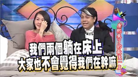 台湾的当红综艺《康熙来了》也在2016年画下了句号。最后一期,主持人蔡康永和小S徐熙悌在一张双人床上以舒服的方式对谈,回顾12年的感动瞬间。对于这样的方式,小S流着眼泪吐槽“我们两个躺在床上大家也不会觉得我们在干嘛”,这正是让无数人熟悉并且喜欢的康熙风格。