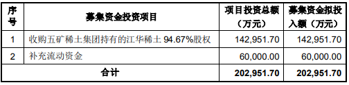从募集资金投向来看,中国稀土拟募资不超过20.30亿元,其中14.30亿元用于完成前述股权收购事项,6亿元用于补充流动资金。