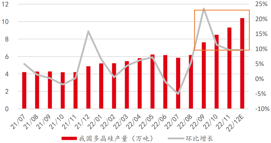 另外,值得注意的是,进入2022年第四季度以后,硅料产量的环比增长速度已经在放缓。