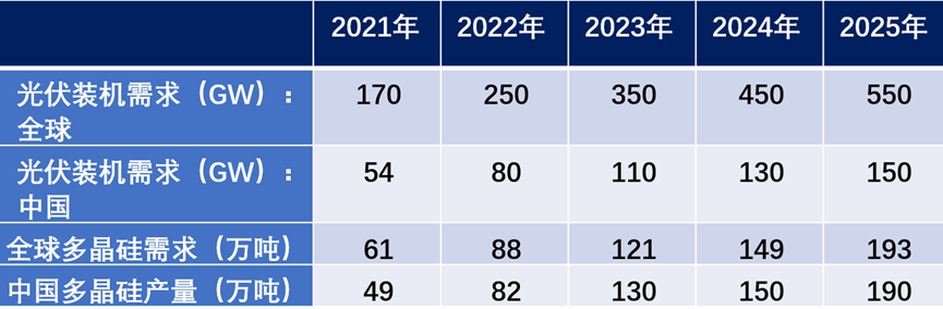 图4 全球光伏装机及多晶硅需求预测;来源:硅业分会