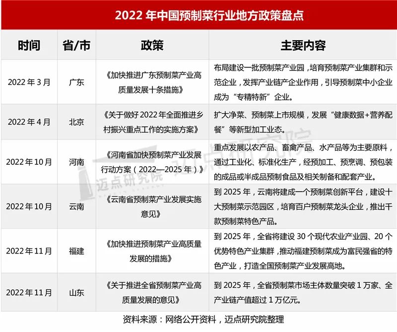 随着预制菜产业的火爆,不少企业竞相入局,国内多地出台加码扶持政策,助力中国预制菜产业加速发展。广东出台全国首个省级预制菜产业政策《加快推进广东预制菜产业高质量发展十条措施》,积极部署预制菜产业发展。河南、云南、福建、山东和北京等省市也陆续推出预制菜产业发展政策,发挥产业基础优势,建设预制菜创新平台,建设预制菜产业园,壮大预制菜产业集群,发挥产业链企业作用,培育示范企业等等一系列措施,支持当地预制菜产业发展。
