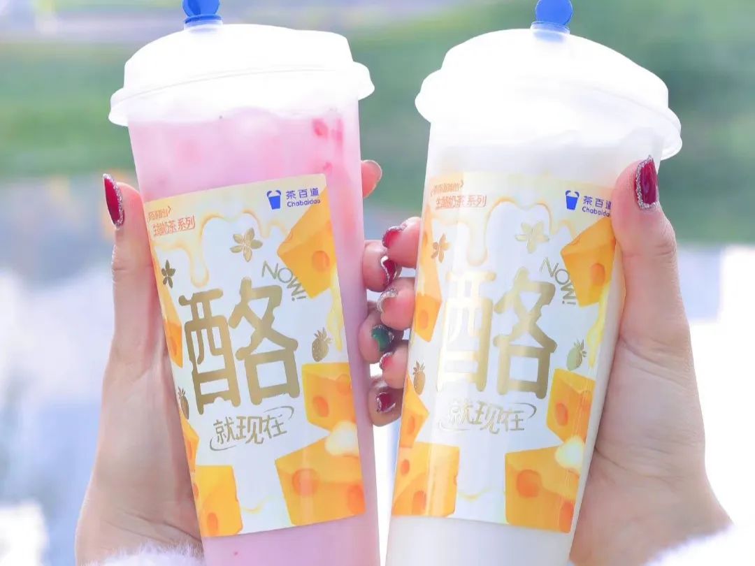 茶百道的生酪奶茶系列,选用新西兰进口干酪和丹麦轻车打芝士两款芝士做复配;