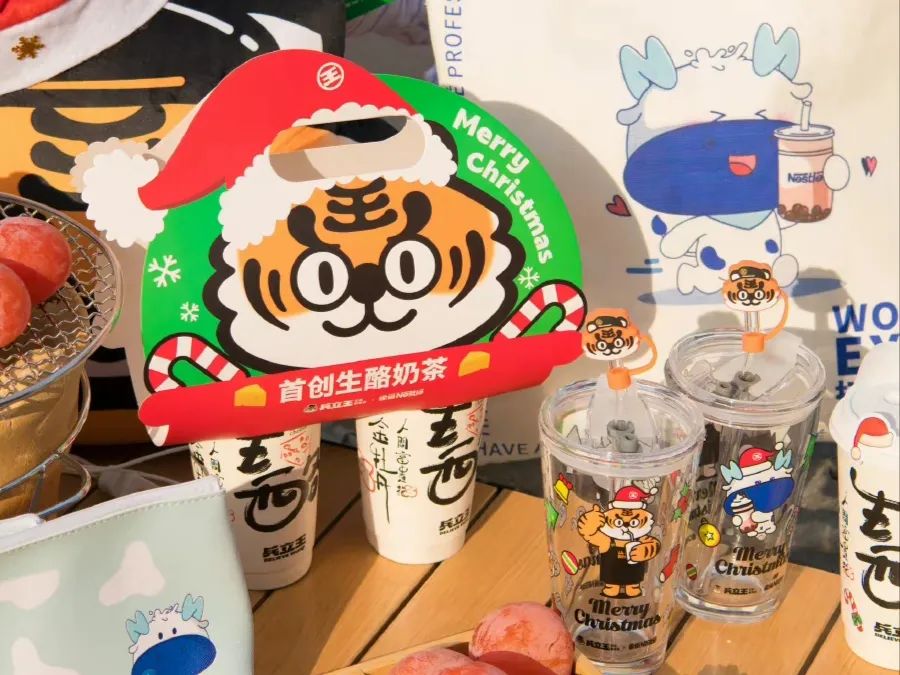兵立王推出的生酪奶茶,和雀巢进行联名,搭配可爱的老虎外带袋,拉风又出片,临近圣诞节并推出多种圣诞周边,被网友狠狠种草。