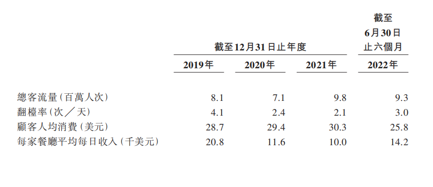 特海国际每家餐厅平均每日收益也不甚理想,从2019年的2.08万美元直接腰斩至2021年的1万美元,该指标在2022年上半年回升至1.42万美元,但是仍有所差距。