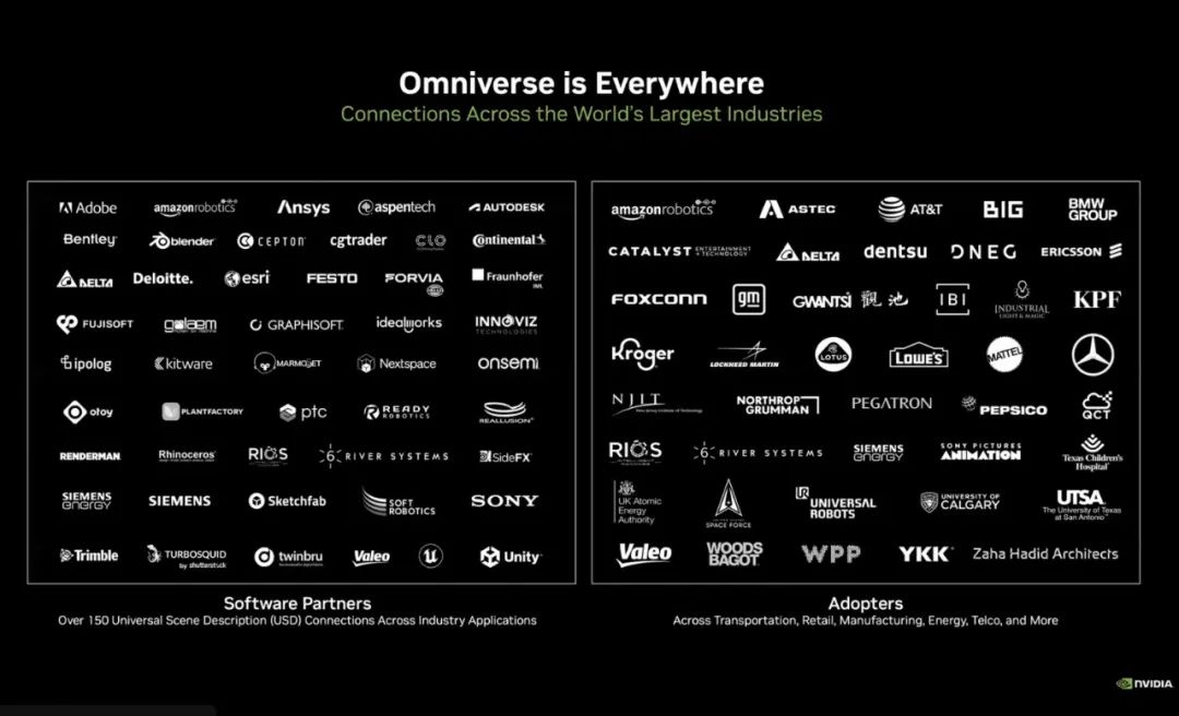 当然了,作为业界大佬,用英伟达自己的话说:Omniverse is everywhere!从软件公司到硬件公司,可以说,英伟达的元宇宙已经遍布各行各业。