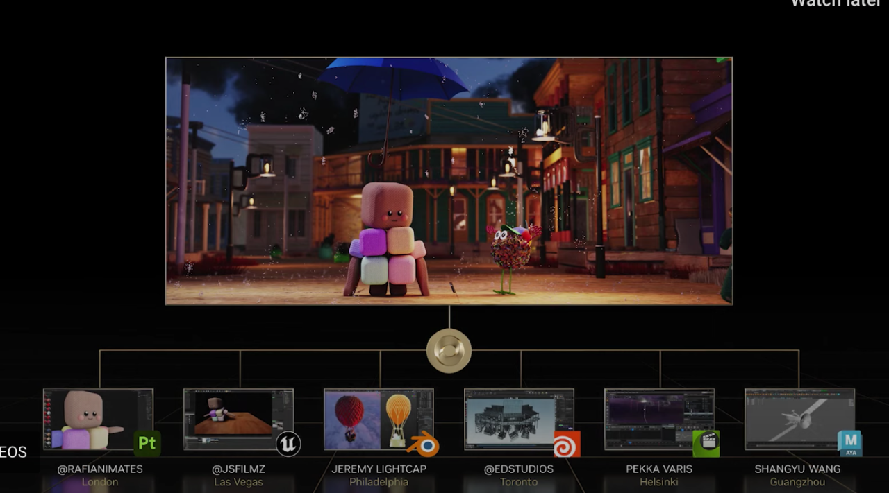 多名生活在全球不同地方的创作者借助Omniverse,使用多款3D设计工具,在多个RTX系统上进行了跨时区的实时协作。