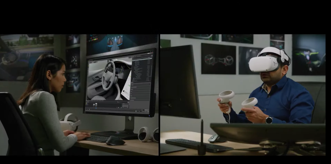 发布会上,英伟达用一段视频直观地展示了Omniverse为协同工作带来的便利。