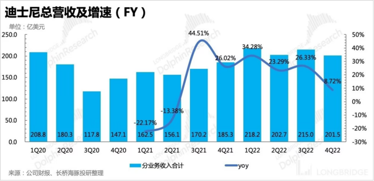 主题公园业务也开始出现“裂缝”,这可是迪士尼过去一个财年最为依赖的挣钱业务。运营利润率在第四季度收缩不少,博客博主和社交网红放大了游客对门票上涨价格的抱怨。迪士尼市场研究发现,55岁及以上的白人游客对乐园的态度发生转变,因为他们认为迪士尼"太清醒"( too woke, 暗指迪士尼在警惕种族偏见和歧视上太敏感)。
