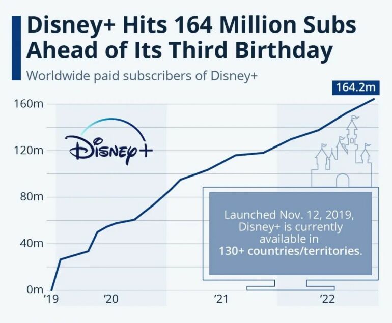 Dinsey+新增1210万流媒体订阅用户,高于分析师预期,全球订阅用户总数达到1.642亿,但亏损比华尔街分析师的预测高了38%,接近15亿美元。