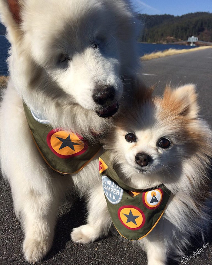 徒步旅行只是这对“毛绒组合”的冒险项目之一,他们俩还喜欢划独木舟、游泳、跑步、露营。当然了,这两只不仅一起玩耍,连睡觉也是要一起的。有了彼此的陪伴,Zen和Hoshi可以任何想做的事。