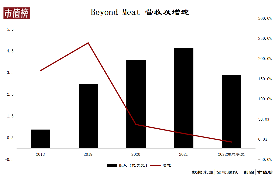 2018年-2021年,Beyond营收分别为0.88亿美元、2.98亿美元、4.07亿美元和4.65亿美元,收入增速明显下滑。从2022年第二个季度起,收入开始下滑。