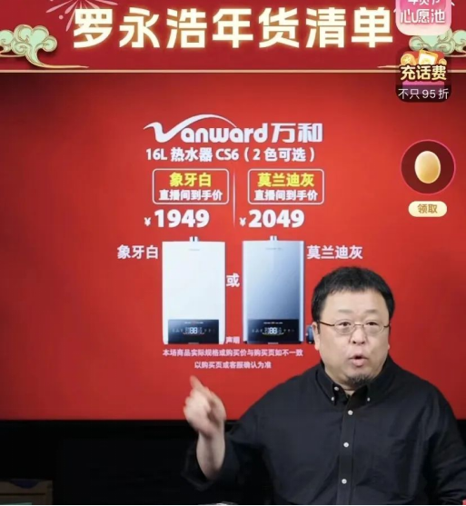 让罗永浩更加不能接受的是,在卖热水器时,商品面板显示,该品牌热水器显示到手价分别为1949元和2049元,但消费者领券之后的价格为1964元和2064元。