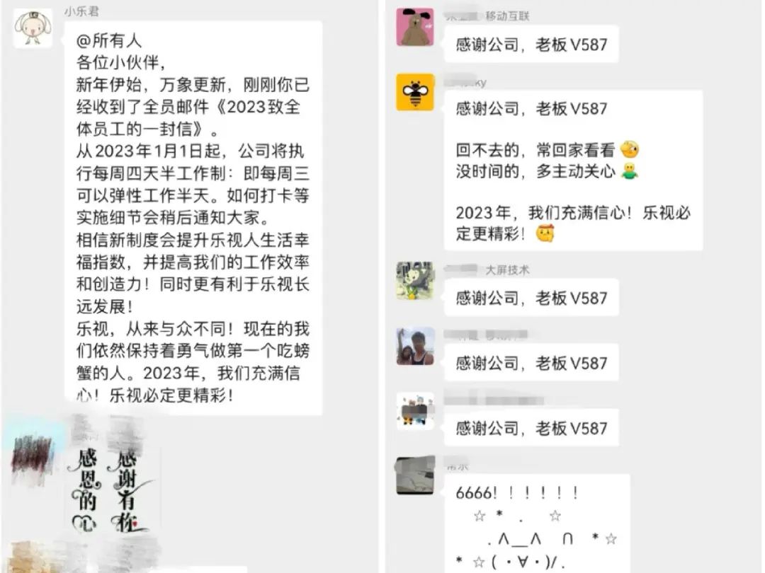 图/宣布四天半工作制后乐视内部群刷屏,来源/乐视提供 小红书平台