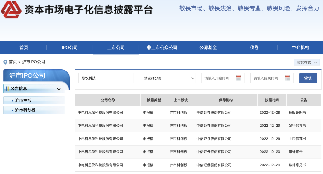 2021年12月24日,思仪科技在青岛证监局启动上市辅导备案登记,2022年12月5日,思仪科技完成上市辅导工作。