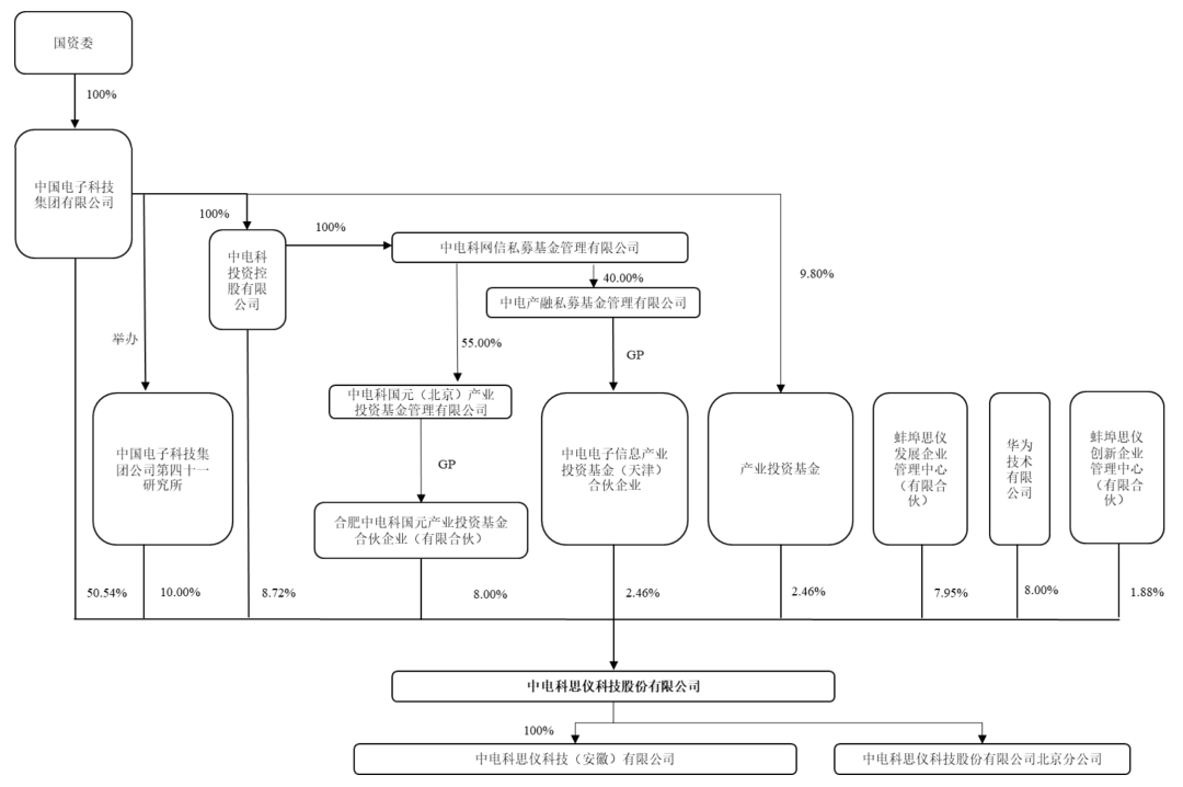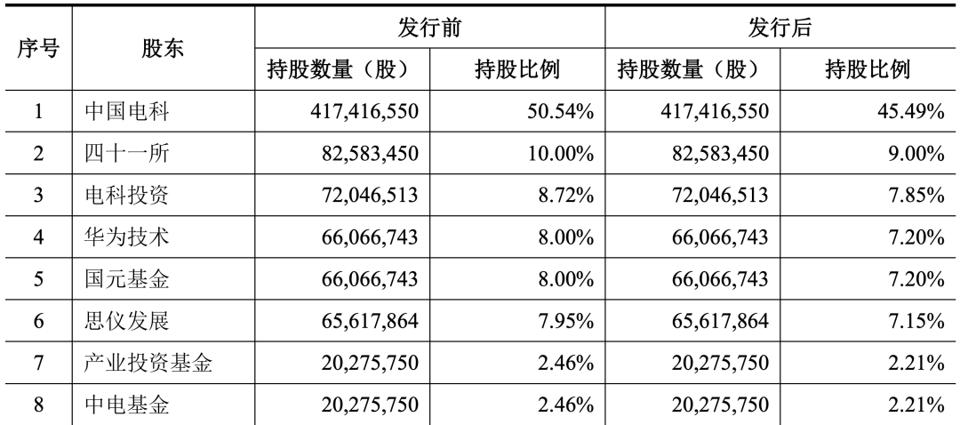 目前,中国电科直接持有公司41,741.66万股股份,占公司总股本的50.54%。中国电科为公司控股股东和实际控制人。此外,电科投资、四十一所和国元基金系中国电科控制或管理的关联方。