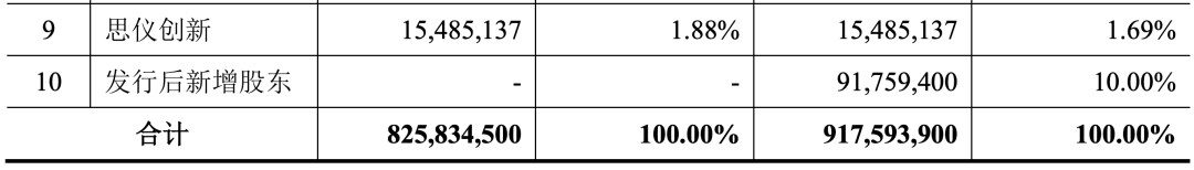 本次发行前,思仪科技总股本为825,834,500股。本次发行股数不低于发行后总股本的10%,发行股数不超过91,759,400股。若本次发行股份91,759,400股,发行前后公司的股本结构如下: