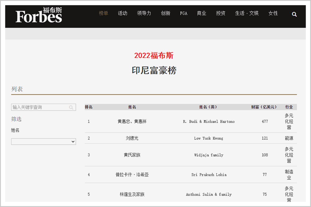 [6]《福布斯公布印尼首富财富大幅提升,黄氏兄弟曾说“搞错了”》国际日报