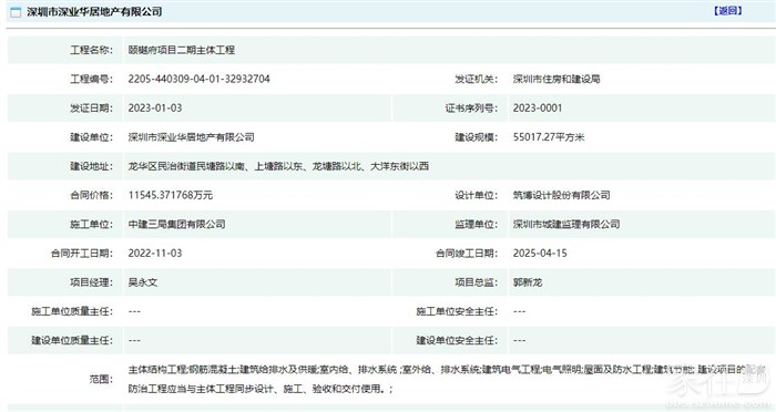 深圳房地产信息网援引家在网友消息,曝光了南山天源华府的最新进度,据招标文件显示,项目建设规模:7.97万平方米;合同价格约6亿元,合同开工日期:2022-10-20,合同竣工日期:2024-06-16。