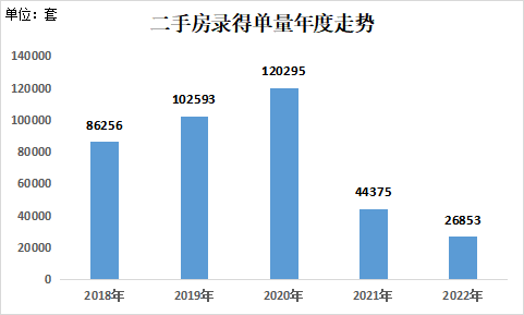 据深房中协统计到的二手房录得量数据分析,2022年全年,深圳二手房录得(含自助)26853套,相比2021年44,375套的录得量,下降幅度达到39.5%,创下深房中协有二手房录得量数据统计以来的最低值,二手房录得量连续2年低于新房成交量,其中仅一、二手住宅交易量比值就已达到1.58:1,新房市场显然已成为当前深圳楼市的主力。