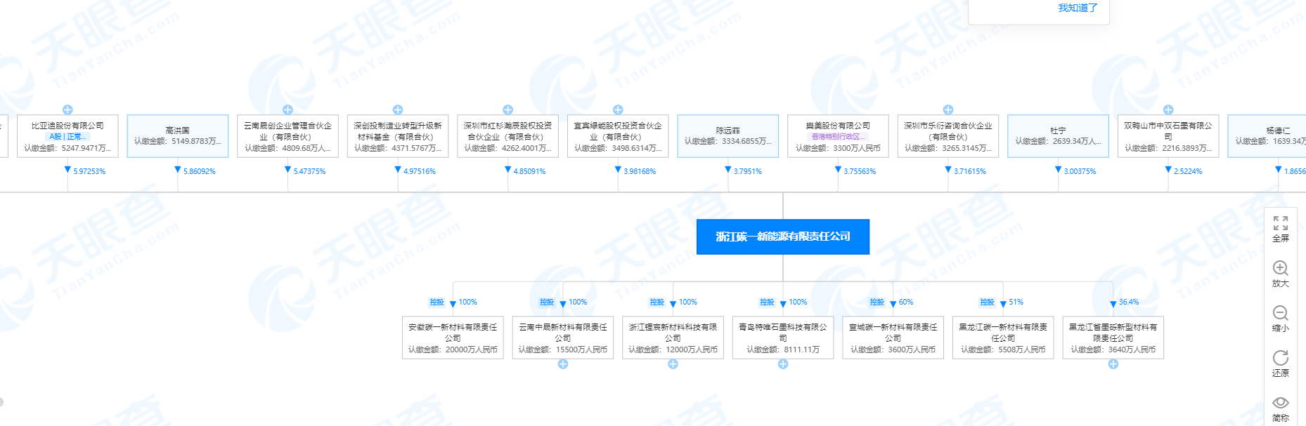 天眼查App显示,近日,浙江碳一新能源有限责任公司发生工商变更,股东新增比亚迪股份有限公司、深圳市创启开盈商务咨询合伙企业(有限合伙)、宜宾绿能股权投资合伙企业(有限合伙)等;同时注册资本由约7.87亿增至约8.79亿。该公司成立于2021年12月,法定代表人为陈远菲,经营范围含新兴能源技术研发;新材料技术研发;电池销售;电池制造。