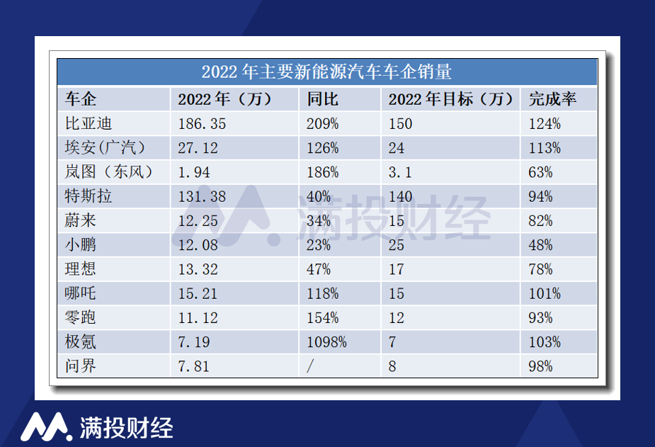 从目标的完成率来看,大部分车企都无法完成2022年的目标,但传统车企品牌展现较强韧性,超额完成的有比亚迪、埃安、哪吒和极氪。