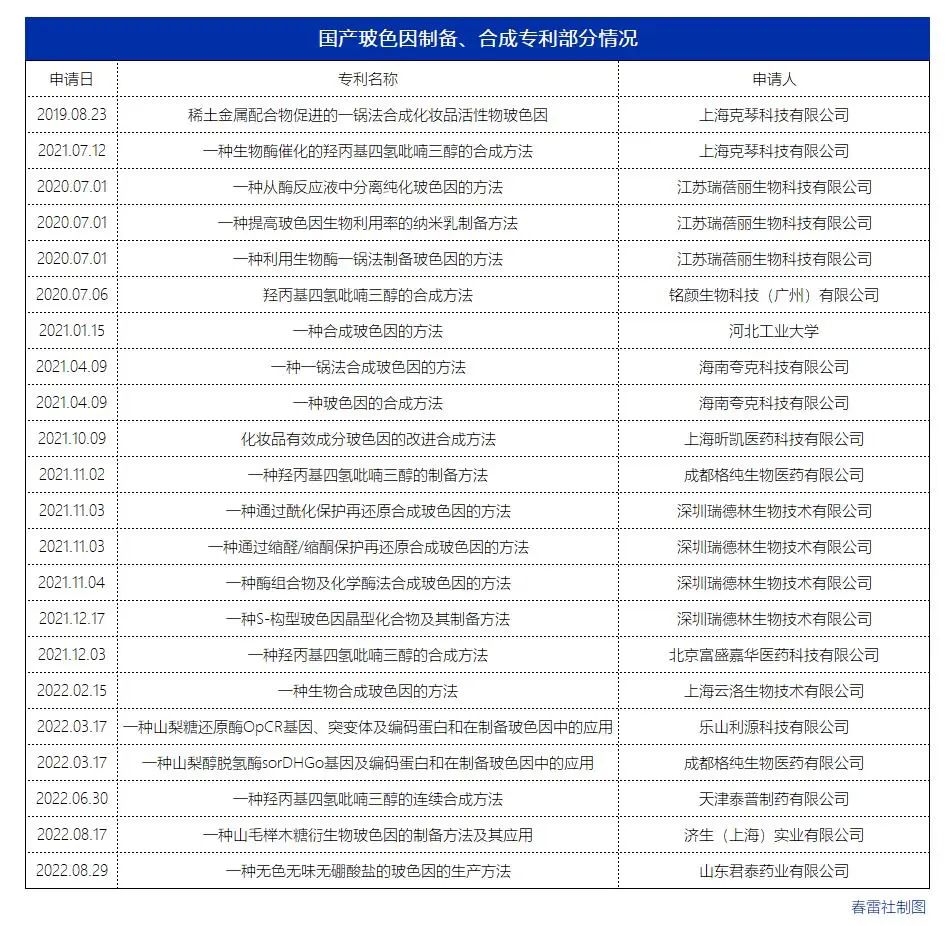 在20多年的研究历程中,欧莱雅集团共发表了12篇玻色因相关的科学文献,并在全球范围内共申请了70多项与玻色因相关的专利,在专利过期之前,欧莱雅构建了玻色因的专利壁垒,牢牢的垄断了玻色因的国内市场。
