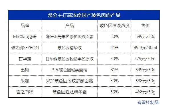 其中,最常见的便是主打「浓度」宣称的平替产品,以下是春雷社整理的部分国产高浓度玻色因产品信息: