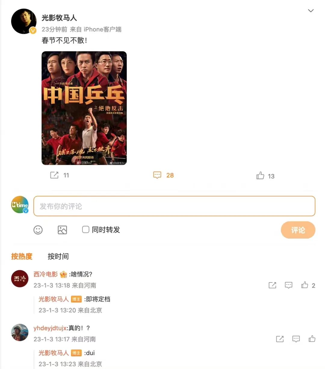故事的走向比预想中热闹,并且还流露出了持续升温的态势。尽管还未官宣定档,但恒业影业总经理陈辉已明确透露,《中国乒乓之绝地反击》也将于春节档上映。