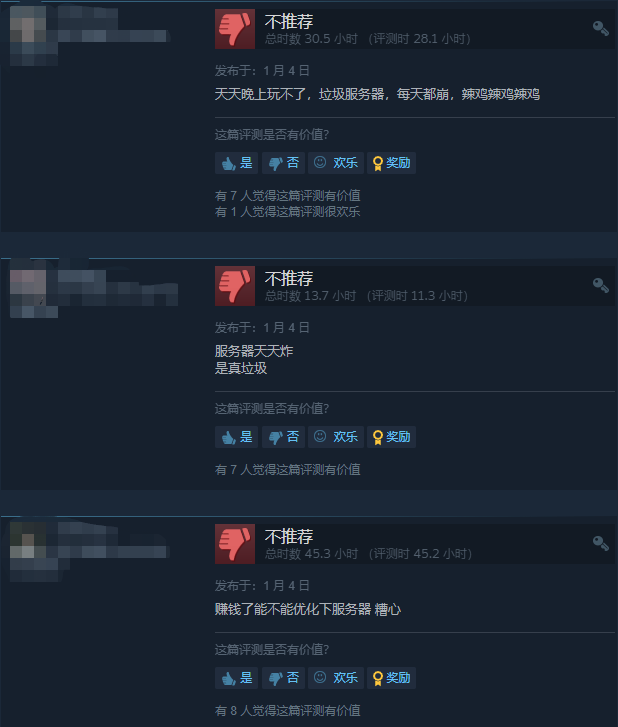 其二,服务器问题难以短时间解决。这几乎成为了多人联机游戏的通病,也是小型团队的硬伤和噩梦。《Among us》此前曾花费了大量的时间翻新的底层代码,才将这个顽疾解决,而对于《鹅鸭杀》来说,几乎在1年半之前,就难以解决的问题可能之后很长一段时间也难以解决。在游戏的评论区,你可以肉眼可见的看到来自国内玩家关于服务器差评的数量呈指数增长。“联机一小时,游戏5分钟”这种情况还会维持多久,最终还有多少核心玩家能留下来,现在都难以预测。