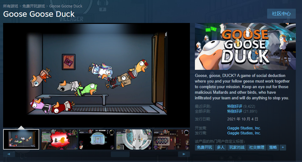 最高在线人数突破40万之后,《Goose Goose Duck》也名正言顺的成为了去年末的最后一匹黑马。