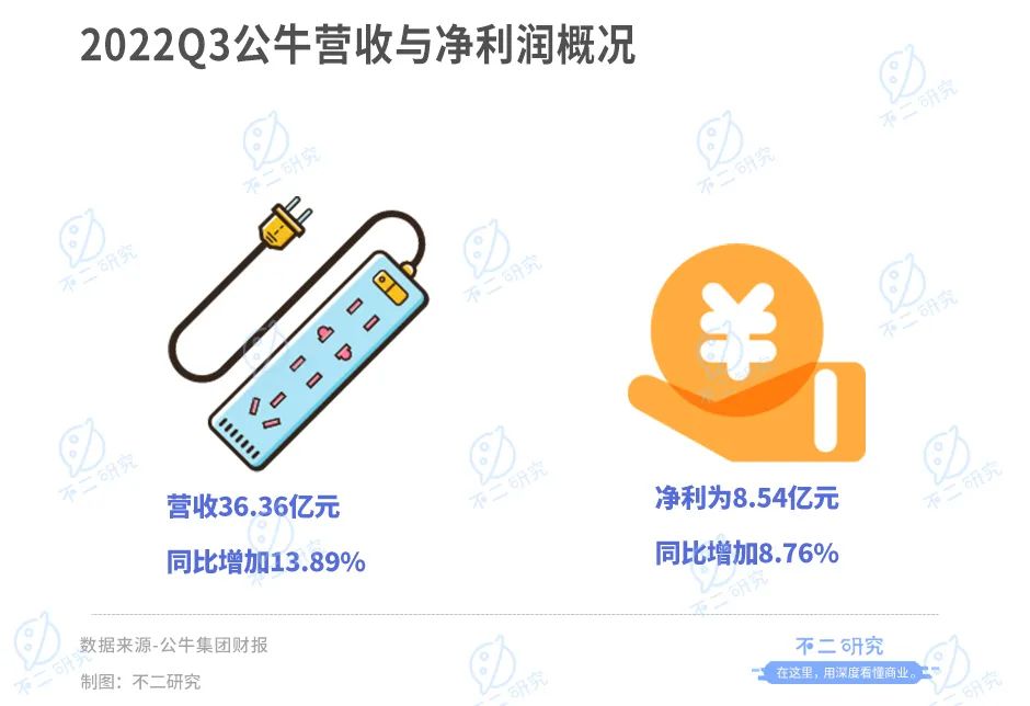 「不二研究」据其最新财报发现:今年三季度,公牛营收36.36亿元,同比增加13.89%;同期,净利为8.54亿元,同比增加8.76%。