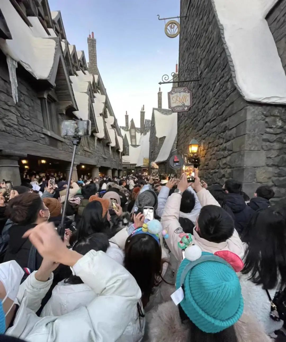 1月2日元旦假期,纪师傅在哈利波特园区拍的游客照片 来源 / 受访者供图
