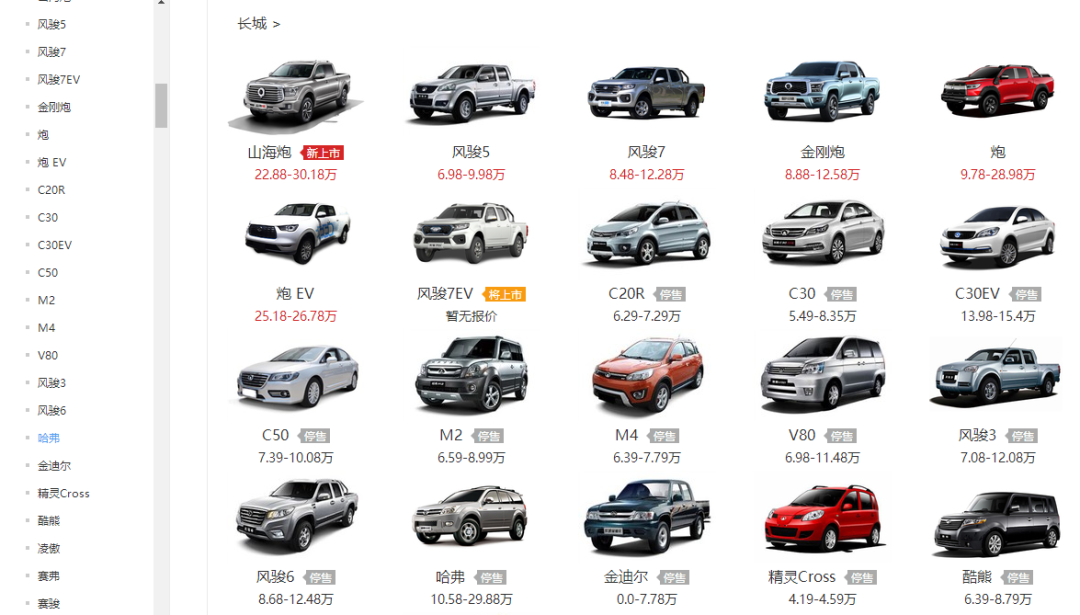 而内部的种种问题汇聚,形成了次次失误:在汽车门户网站中,长城一大串的停产车型诉说着这家车企在产品线上的无数失误:哈弗F7、哈弗H8、哈弗H1、魏牌VV系列等等。无数车型推出后效果不佳,又很快停产。