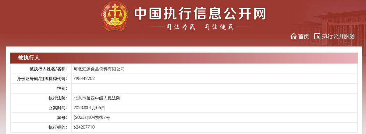 中国执行信息公开网显示,1月5日,河北汇源食品饮料有限公司、北京汇源集团钟祥有限公司、山西汇源食品饮料有限责任公司、朱新礼、房孝玲等新增一则恢复执行信息,执行标的逾6.24亿元,执行法院为北京市第四中级人民法院。