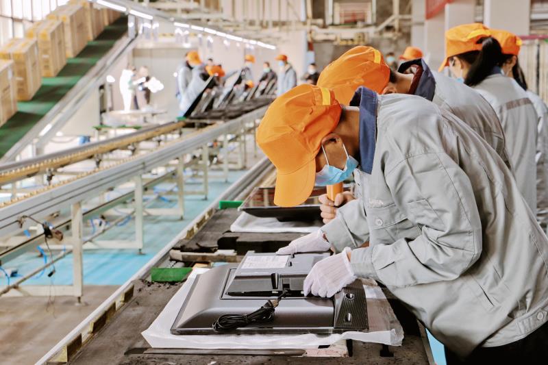 成都康佳是青白江区消费类电子信息产品出口加工产业的链主企业,生产线覆盖32-55寸各类 LCD、OLED 等平板显示产品,其中每个组件的安装,都有严苛的标准和要求。目前,成都康佳每月能生产13万台液晶电视。