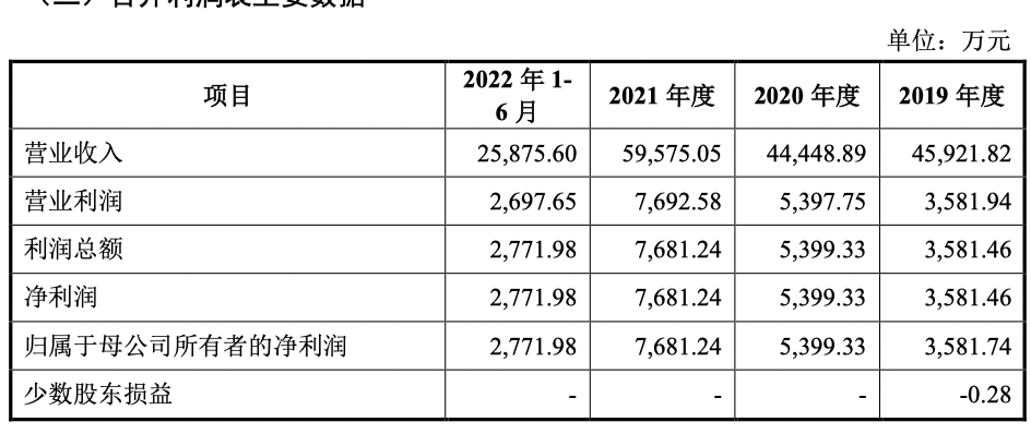 招股书显示,公司主营业务聚焦于高规格羽绒产品的研发、生产和销售,主要产品为鹅绒和鸭绒,产品主要应用于服装、寝具等羽绒制品领域。2019年、2020年、2021年、2022年1-6月,公司营业收入分别为4.59亿元、4.44亿元、5.96亿元和2.59亿元,归属母公司股东的净利润分别为3581.74万元、5399.33万元、7681.24万元和2771.98万元。报告期内,公司羽线类产品的收入分别为4.22亿元、4.24亿元、5.71亿元和2.53亿元,占主营业务收入的比例分别为96.03%、98.34%、98.02%和100.00%,是公司销售的主要产品米型。