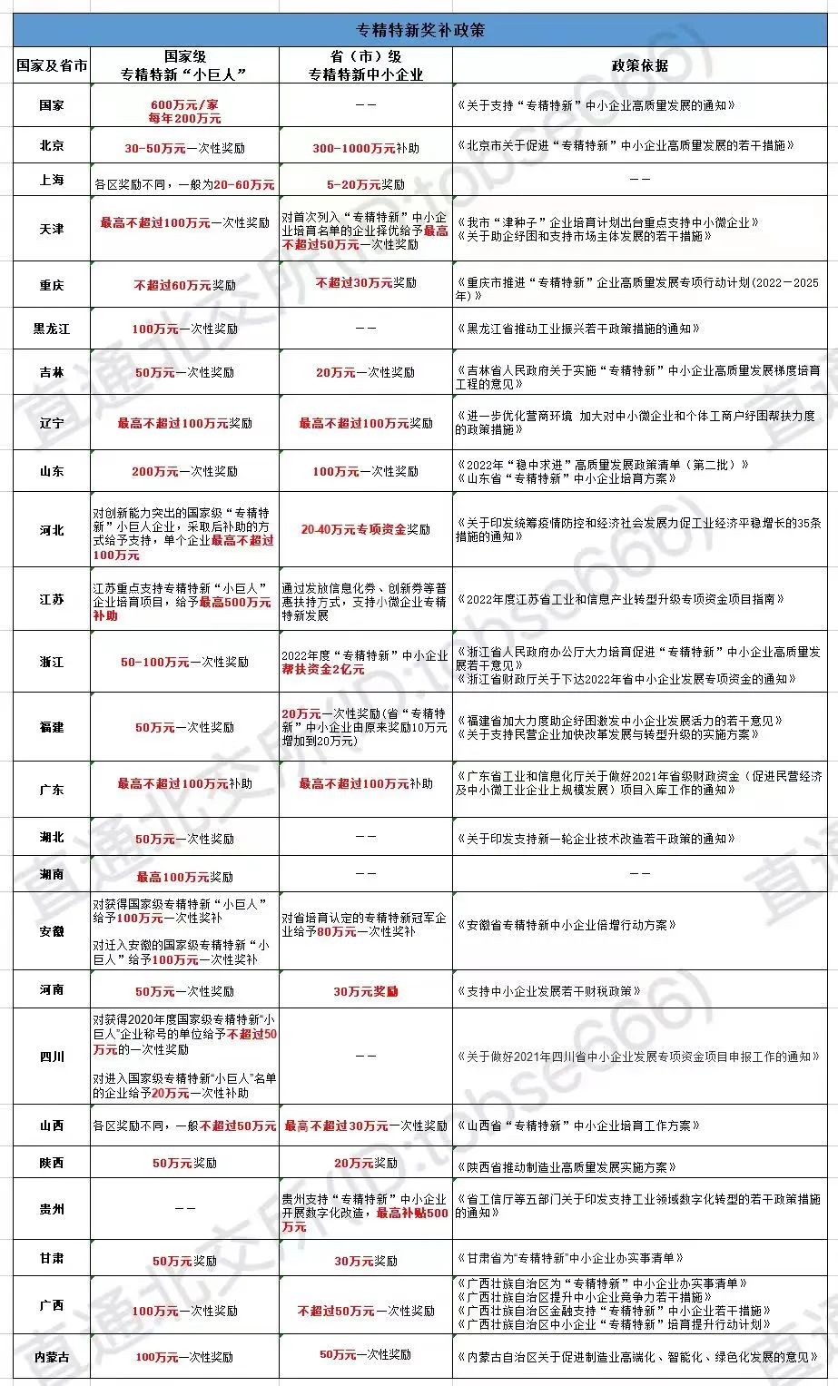 当然,对于“专精特新”企业的奖励远不止此。若能在新三板挂牌,或在沪深、北交易所上市,各省市的奖励也会叠加。