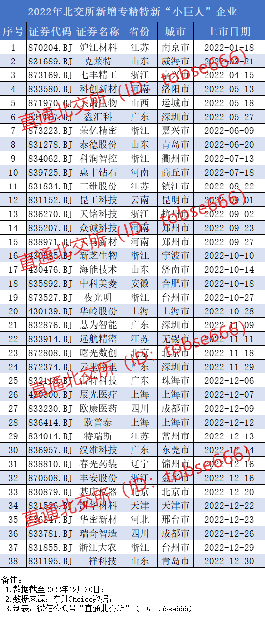 直通北交所统计,北交所2022年新增的38家国家级专精特新“小巨人”企业中,有37家企业属于制造业,另外1家属于软件和信息技术服务业。