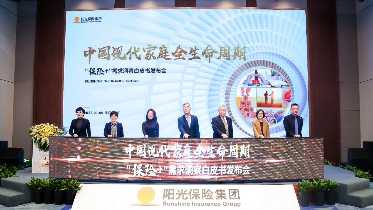 1月6日,阳光保险集团《中国现代家庭全生命周期“保险+”需求洞察白皮书》(下文简称白皮书)发布会于阳光金融中心举行,本次白皮书是继《2021中国高净值人群财富风险管理白皮书》之后的又一个新的研究成果。阳光保险集团总裁李科、总裁助理王震凌、阳光人寿总裁王润东、中国社会科学院世界社保研究中心主任郑秉文、尼尔森IQ消费者洞察金融领域总监肖洁菲以及阳光客户代表和财富风险管理师代表作为特邀嘉宾出席此次活动。