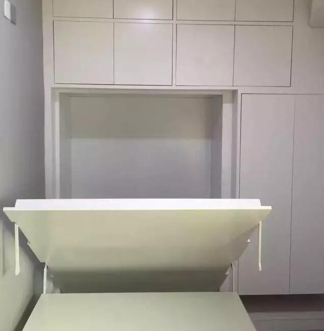 床是折叠的,是衣柜的一部分,不占多少空间。晚上睡觉时放下来即可。不用的时候,还能当一个小桌台。