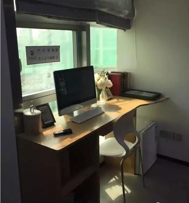 窗户跟前就是一个书桌,可以用来夜里加班,毕竟,买这个房子也要贷款60万呢。不加班,拿什么还?